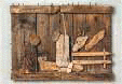 Für seine Kompositionen verwendet er sehr unterschiedliches Material: Holz, Stahl, Stein, Stoff, weggeworfene Materialien, die Spuren des Lebens bewahren.